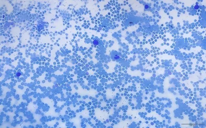 結(jié)果描述:淋巴細胞和嗜堿性細胞為紫紅色,紅細胞為藍色